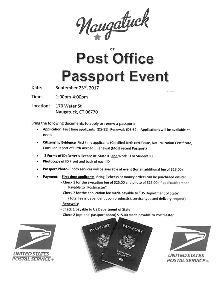 9/23/2017 - Naugatuck, CT - 1:00 pm - 4:00 pm - Post Office Passport Event